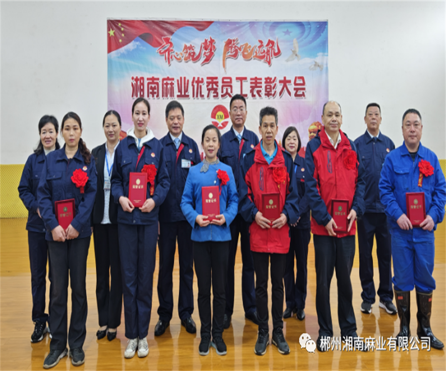 表彰催奮進,榮譽化動力。表彰大會的圓滿召開,不僅是對2022年工作的總結(jié)和回顧,更是對未來發(fā)展的展望和規(guī)劃。湘南麻業(yè)的發(fā)展離不開每一位湘麻人的傾心付出,風(fēng)雨同舟者興,榜樣的力量,需要傳承,更需要接力!讓我們汲取榜樣的力量,學(xué)習(xí)先進,爭當(dāng)先進,攜手并進,創(chuàng)新聚力!
